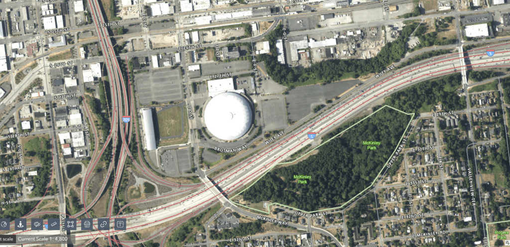 Once a working class neighborhood named the Hawthorne District, the area was razed to make room for the Tacoma Dome.