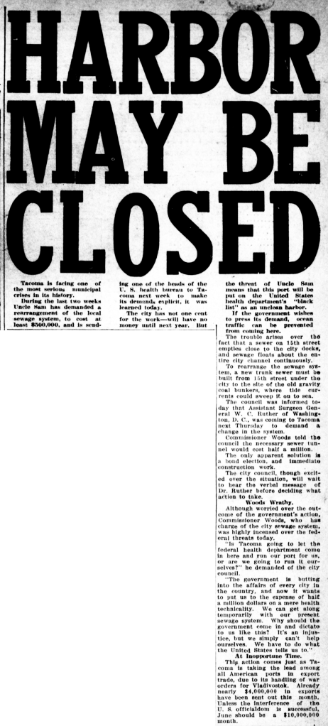 “Is Tacoma going to let the federal health department come in here and run out port for us, or are we going to run it ourselves?” he demanded of the city council.